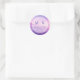This elegant wedding sticker features a circular design with a gradient background transitioning from soft pink to deep purple. The minimalist layout includes large, dark purple initials "M" and "K," separated by a vertical line, set against a light lavender backdrop. Below the initials, the phrase "THANK YOU" is written in a smaller serif font, conveying gratitude in a sophisticated manner. The modern and refined style makes it perfect for expressing appreciation at weddings or special events, adding a touch of class to any celebration.