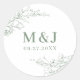 Élégant Sage Green Floral Wreath Monogramme Mariage Classic Round Sticker