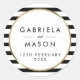 Avec un arrière - plan à rayures noir et blanc classique, ces élégants stickers de mariage sont dotés d'une élégante bordure en feuille d'or imitation encadrant vos noms et date spéciale dans la typographie chic. Conçu par Thisisnotme©