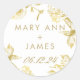 Sticker Rond Élégant Mariage Floral Or Enregistrer La Date
