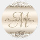 Sticker Rond Élégant Mariage Monogramme Champagne Metallic