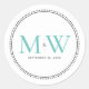 Sticker Rond Élégant Mariage Monogramme Turquoise