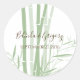 Ce design présente d'élégantes pousses de bambou vert. L'arrière - plan de bambou vert cède la place à la typographie de la formulation marron. Le bambou ombrage lui-même en créant un ton de vert différent lui donnant une dimension. Design élégant autocollant mariage asiatique avec des éléments modernes. Des invitations de mariage et d'autres articles de papeterie sont également disponibles.