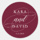 Sticker Rond Elégant Marsala et Mariage de calligraphie blanche