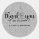 Un sticker de remerciement gris et noir élégant avec une jolie typographie de script. A un joli arrière - plan de texture de papier. Idéal pour remercier les clients ou faire un joli sceau d'enveloppe pour vos cartes de remerciement mariage. Personnalisez-le avec votre nom. Conçu pour vous par Blackberry Boulevard.