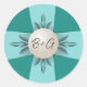 Sticker Rond Élégant Monogram Turquoise Pearl Mariage de ruban