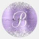 Sticker Rond Élégant Monogramme argenté brillant clair violet à