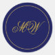 Sticker Rond Élégant Monogramme bleu foncé et Mariage or