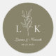 Sticker Rond Élégant Monogramme feuille classique Mariage vert
