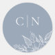 Sticker Rond Élégant Monogramme Floral Initiales Mariage bleu