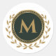 Elégant Monogramme Initial Faux Gold Classic Sticker Rond Sceau. Faux or monogramme feuille emblème de couronne avec centre vert foncé. Personnalisez avec votre propre monogramme initial. Excellent pour les scellés d'enveloppe, privilégiez les scellés et les étiquettes d'emballage, Nous vous invitation de visiter notre magasin Zazzle, Simon & Grace, pour les produits correspondants et plus encore. Veuillez nous contacter si vous avez besoin d'aide pour la conception.