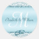 Sticker Rond Élégant Monogramme Mariage Bleu Métallique
