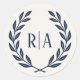 Un élégant autocollant de mariage avec les initiales monographiques du couple à l'intérieur d'une couronne de couronne de laurier. Parfait pour ajouter la touche finale à votre papeterie mariage, comme les scellés d'enveloppe ou l'attachement de rubans, cartes et étiquettes à votre remerciement favorise. Couleurs : bleu marine et crème.