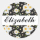 Sticker Rond Élégant Monogramme noir et blanc Motif de margueri