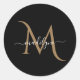 Sticker Rond Élégant Monogramme noir et or Nom du script