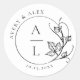 Sticker Rond Élégant Monogramme noir Mariage blanc