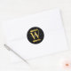 Sticker Rond Élégant Monogramme noir & or Script moderne