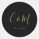 Sticker Rond Élégant Monogramme Or Mariage noir