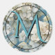 Sticker Rond Elégant moody bleu poussiéreux flores d'aquarelle