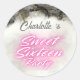 Sticker Rond Elégant néon rose noir rétro doux 16e anniversaire