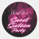 Sticker Rond Elégant néon rose noir rétro doux 16e anniversaire