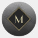 Sticker Rond Élégant Noir Brossé Avec Monogramme Or Simple
