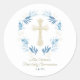 Sticker Rond Élégant Or Bleu Première Communion Sainte