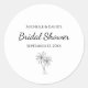 Autocollant de douche nuptiale moderne, avec palmiers tropicaux et élégant design de typographie noir. Avec des lettres personnalisables, vous pouvez ajouter vos propres informations, Idéal pour planifier une célébration pré-mariage inspirée de la plage.