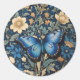 Sticker Rond Elégant Papillon Bleu William Morris Inspiré