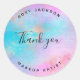 Magnifique et stylisée maquilleuse merci design autocollant qui comprend des lettres manuscrites modernes, de l'or faux rose et une texture aquarelle colorée.