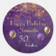 Sticker Rond Elégant Purple Gold 50 & Fabuleux Joyeux anniversa
