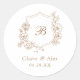 Sticker Rond Élégant Rose Floral Crest or Mariage Monogramme