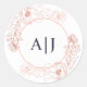 Sticker Rond Élégant rose Rose or Mariage Floral Monogramme