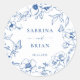 Sticker Rond Elégant Royal Blue Floral Mariage