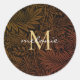 Sticker Rond Élégant Rust Orange Or Floral Script Monogramme