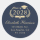 Sticker Rond Élégant Script Blue Gold Graduation Adresse de ret