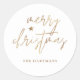 Sticker Rond Élégant Script Joyeux Noël Gold Star Blanc