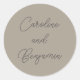 Élégant Mariage de script moderne Noms Taupe Gris Classic Sticker rond