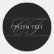 Sticker Rond Élégant Script Monogramme modifiable noir gris bla