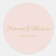 Élégant script personnalisé Mariage favori autocollants étiquette. Noms et date personnalisables. Texte or, arrière - plan rose pâle