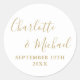 Doté de noms de style signature et de date spéciale, cet élégant autocollant peut être personnalisé avec vos noms en typographie or chic sur un arrière - plan blanc. Vous pouvez customiser l'arrière - plan à votre couleur de thème mariage préférée. Conçu par Thisisnotme©