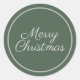 Élégant autocollant vert "Joyeux Noël" classique rond avec texte de script de calligraphie. Contactez-nous pour obtenir de l'aide sur la personnalisation ou pour demander des produits correspondants.