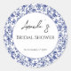 Sticker Rond Élégant Toile Bleue Fleurs Mariage Shower