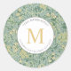Sticker Rond Élégant Vert Floral Or Monogramme Adresse de retou