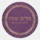 Sticker Rond Élégant violet et or hébreu Joyeux Purim