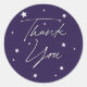Un élégant autocollant/enveloppe de "Merci" moderne avec un script blanc écrit à la main et des étoiles éparpillées contre un arrière - plan violet. Fonctionne sur les formes d'autocollants ronds ou Carrés. Disponible en d'autres couleurs.
