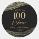 Sticker Rond Elégante Black Gold Agate 100e fête d'anniversaire