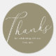 Un autocollant de remerciement simple et classique avec un élégant script de calligraphie blanche et votre nom personnalisé sur un arrière - plan vert olive. Parfait pour la remise des diplômes merci mailings, ou toute occasion spéciale où vous voulez dire merci!