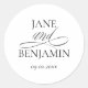 Sticker Rond Élégante enveloppe Mariage simple en noir et blanc