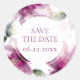Un beau autocollant de date avec une peinture florale de lys rose aquarelle artistique assis derrière un panneau encadré blanc tenant votre personnalisation enregistrer les détails de date définis dans un texte élégant. Conçu par Thisisnotme©